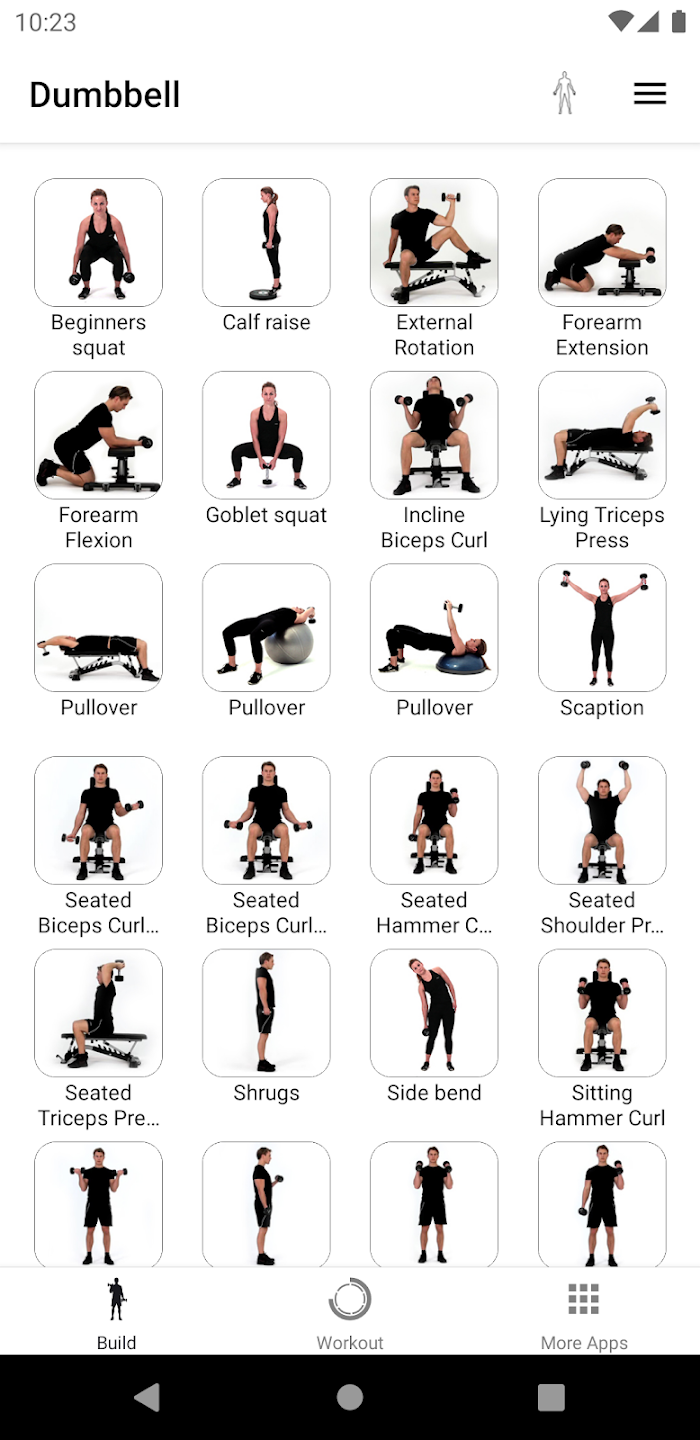 • Εμπνευστείτε από 70 ασκήσεις με αλτήρες που παρουσιάζονται σε ευκρινές βίντεο HD.