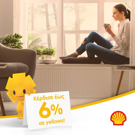 Kέρδισε έως 6% σε yellows, για πετρέλαιο θέρμανσης από την Shell! Από 16/10 έως 30/11/23, κάλεσε το 18330 ή επισκέψου ένα από τα επιλεγμένα πρατήρια Shell και παράγγειλε πετρέλαιο θέρμανσης, αξίας 500€ και άνω. Χρησιμοποίησε για την πληρωμή σου κάρτα της Τράπεζας Πειραιώς που συμμετέχει στο Πρόγραμμα Επιβράβευσης και κέρδισε: