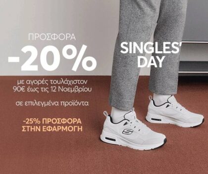 Με αφορμή την Single’s Day, τo online online κατάστημα epapoutsia.gr προσφέρει 20% έκπτωση σε αγορές τουλάχιστον 90€ στην ιστοσελίδα ενώ άμα ψωνίσεις μέσω της εφαρμογής η έκπτωση γίνεται 25%! Κάνε στον εαυτό σου ένα δώρο!