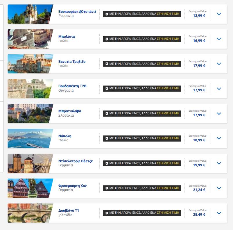 Από Αθήνα έχει μόνο για Μάλτα αλλά σε άλλες περιοχές υπάρχουν περισσότερες επιλογές